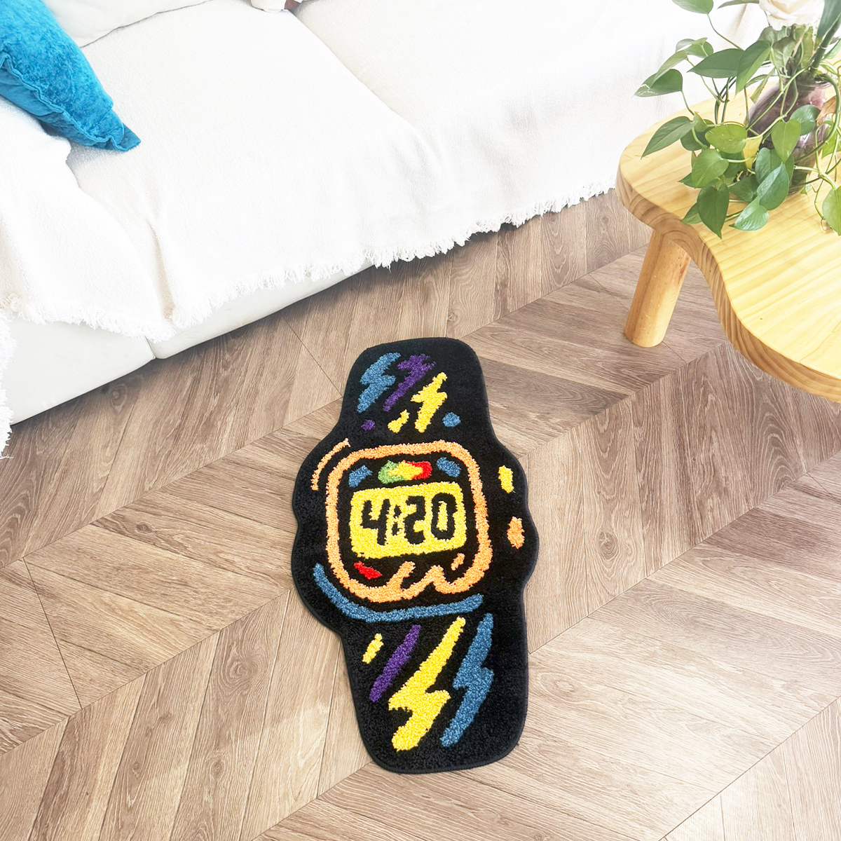 4:20 Graffiti Watch Tufted Rug - Colorful Lightning Pattern Anti-Slip Floor Mat for Street Style Home & Dorm.