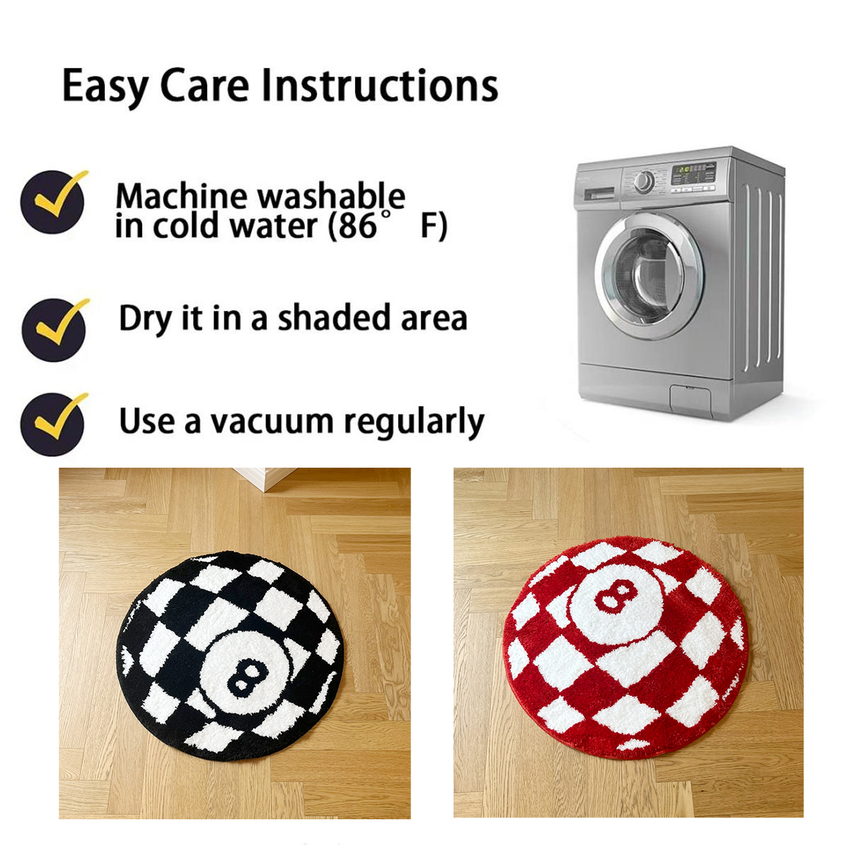 Circular Checkerboard Pattern Tufted Rug No.8 Billiards Mat Korean Style Soft Living Room Carpet Area Floor Pad Doormat Decor