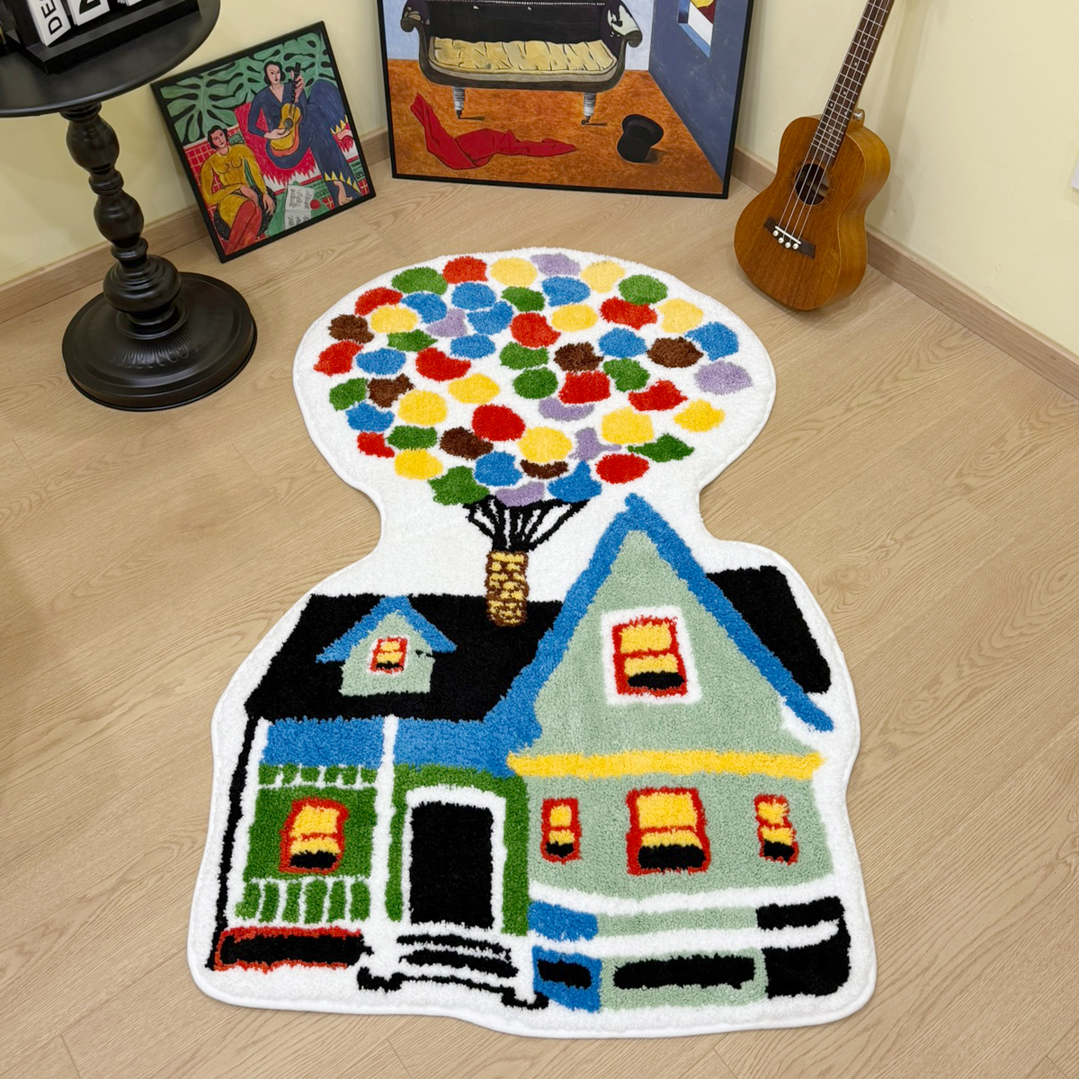 Colorful Balloon House Tufted Area Rug Bedroom Mat Simple Aesthetic Kawaii Housewarming Gift Handmade Non-Slip Decorative Rug