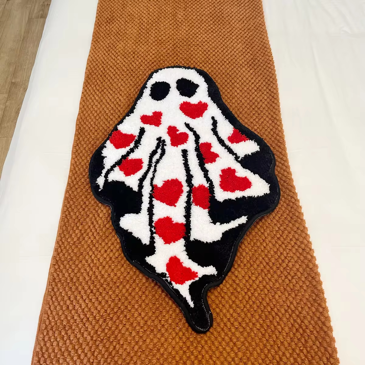Handmade Tufted Heart Ghost Rug Cute Ghost Rug Halloween Cloakroom Hanging Rug Black White Soft Fluffy Carpets Non-slip Bathmat