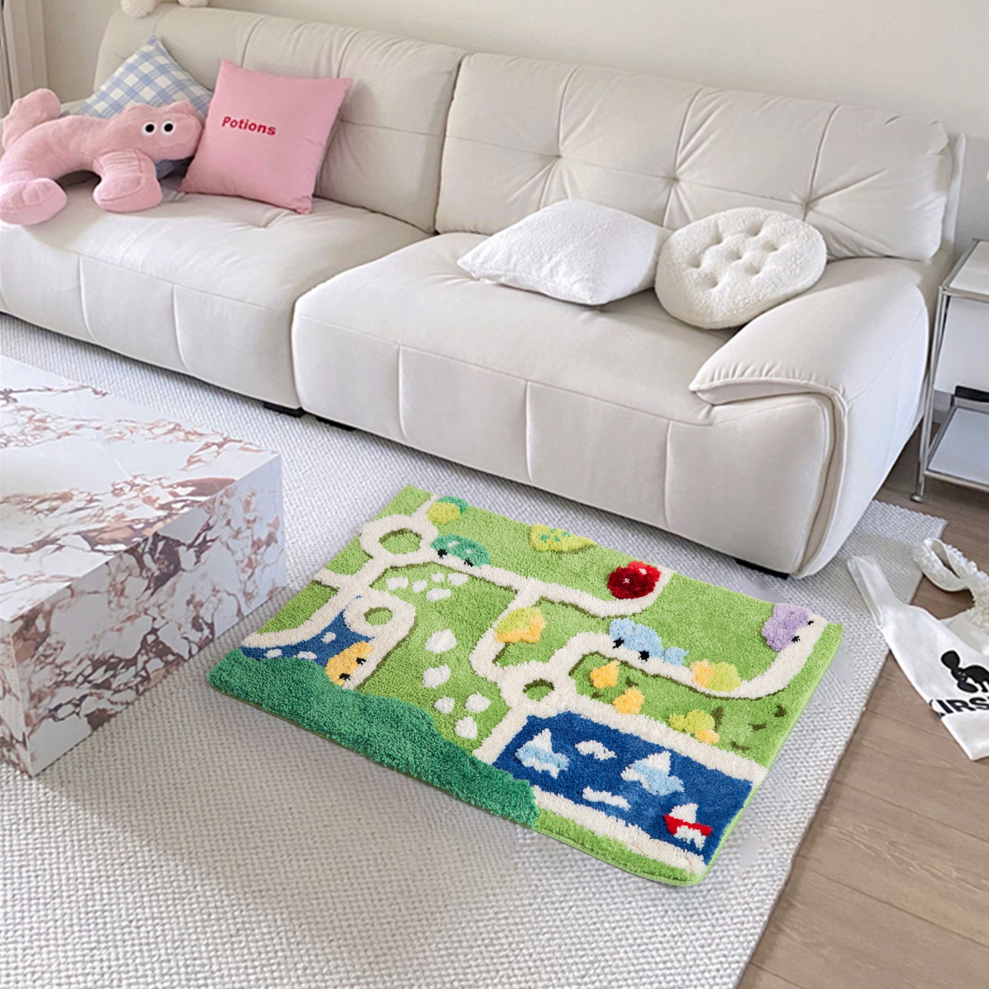 Kids Play Mat Road Map Rug - Colorful Fluffy Floor Mat for Toddler Bedroom Playroom, Interactive Traffic Park Pattern Carpet, Anti-Slip Soft Play Area Mat
