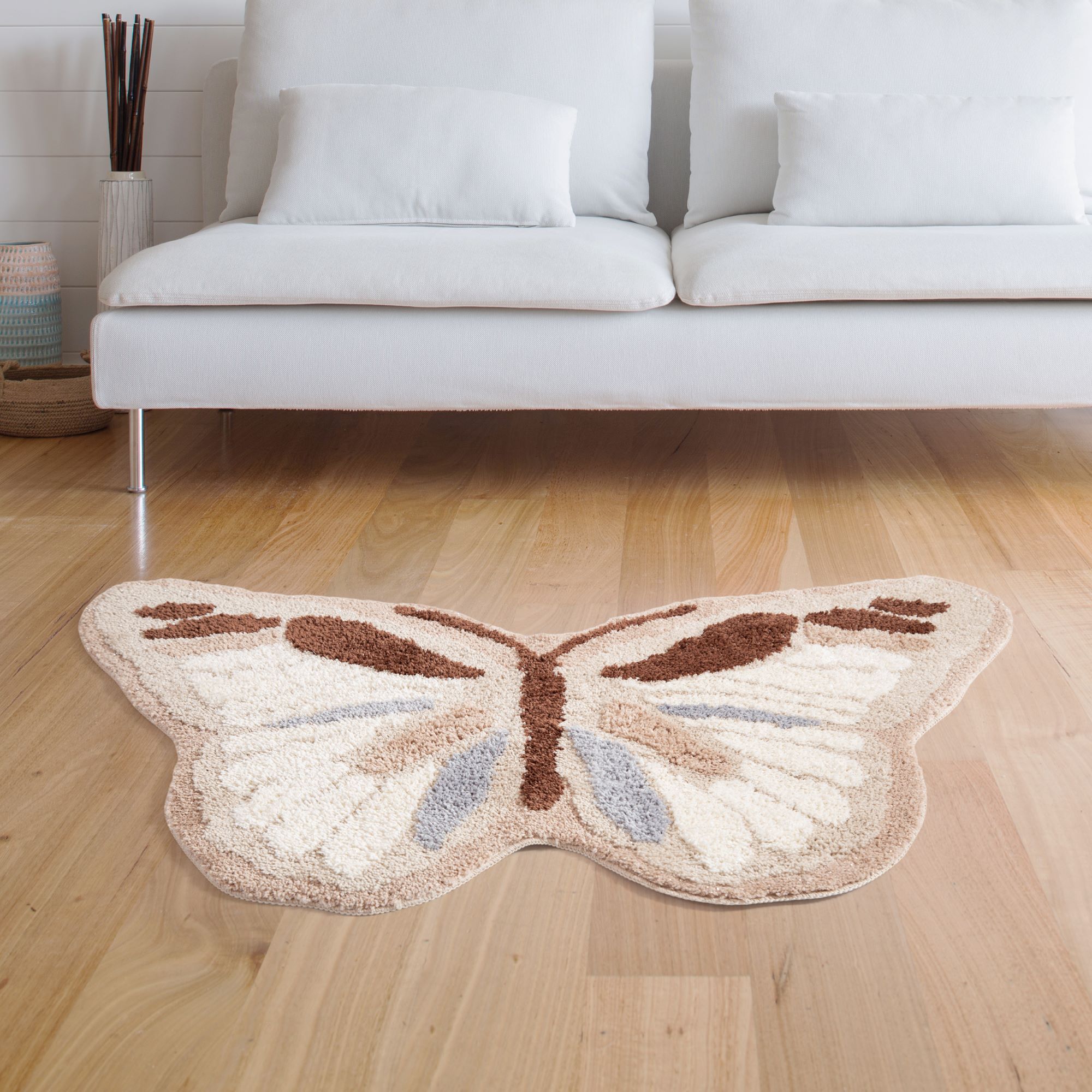Neutral Tone Butterfly Shape Rug - Soft Fluffy Plush Floor Mat for Bedroom Living Room, Minimalist Home Decor Carpet, Anti-Slip Door Mat
