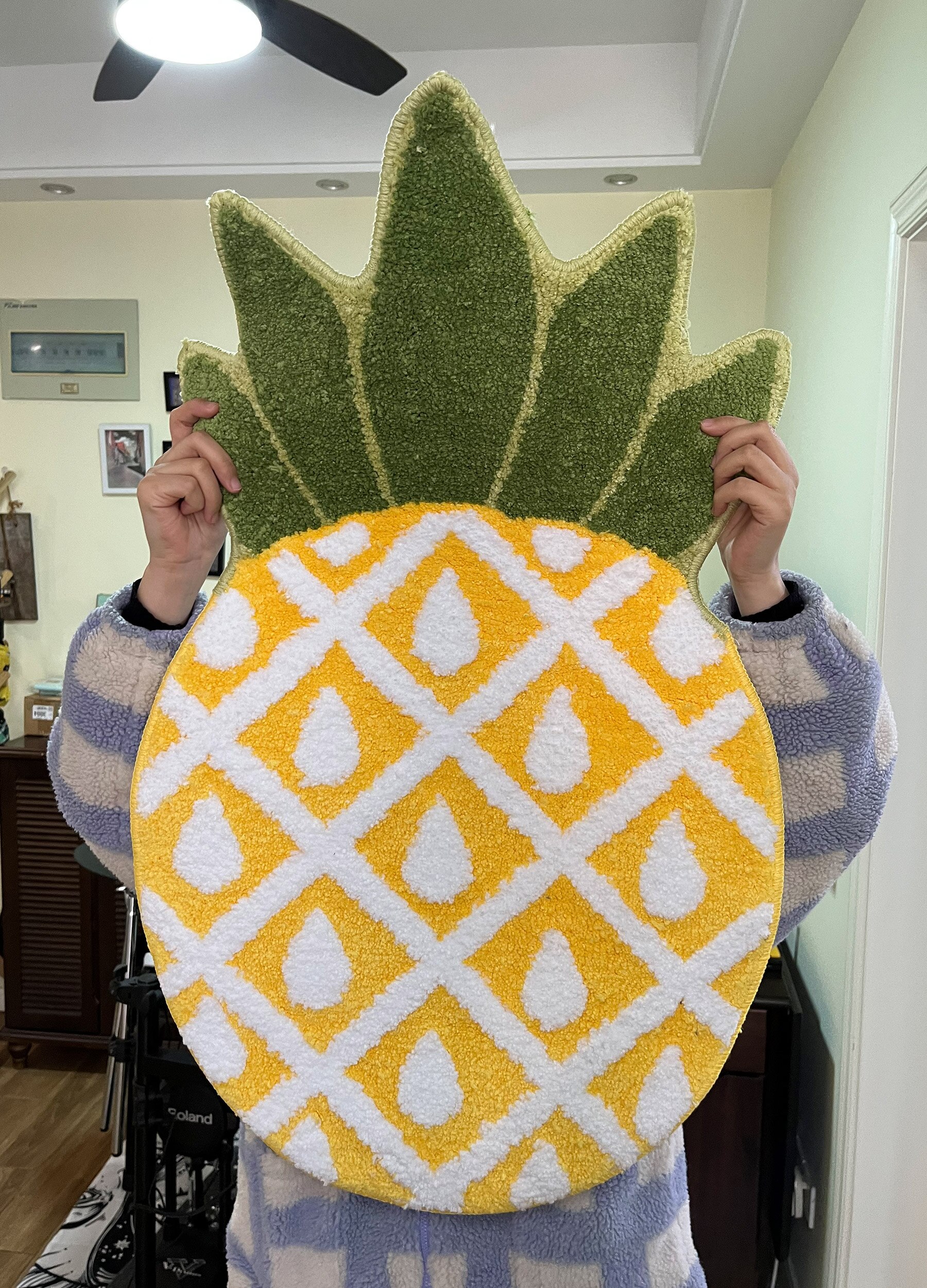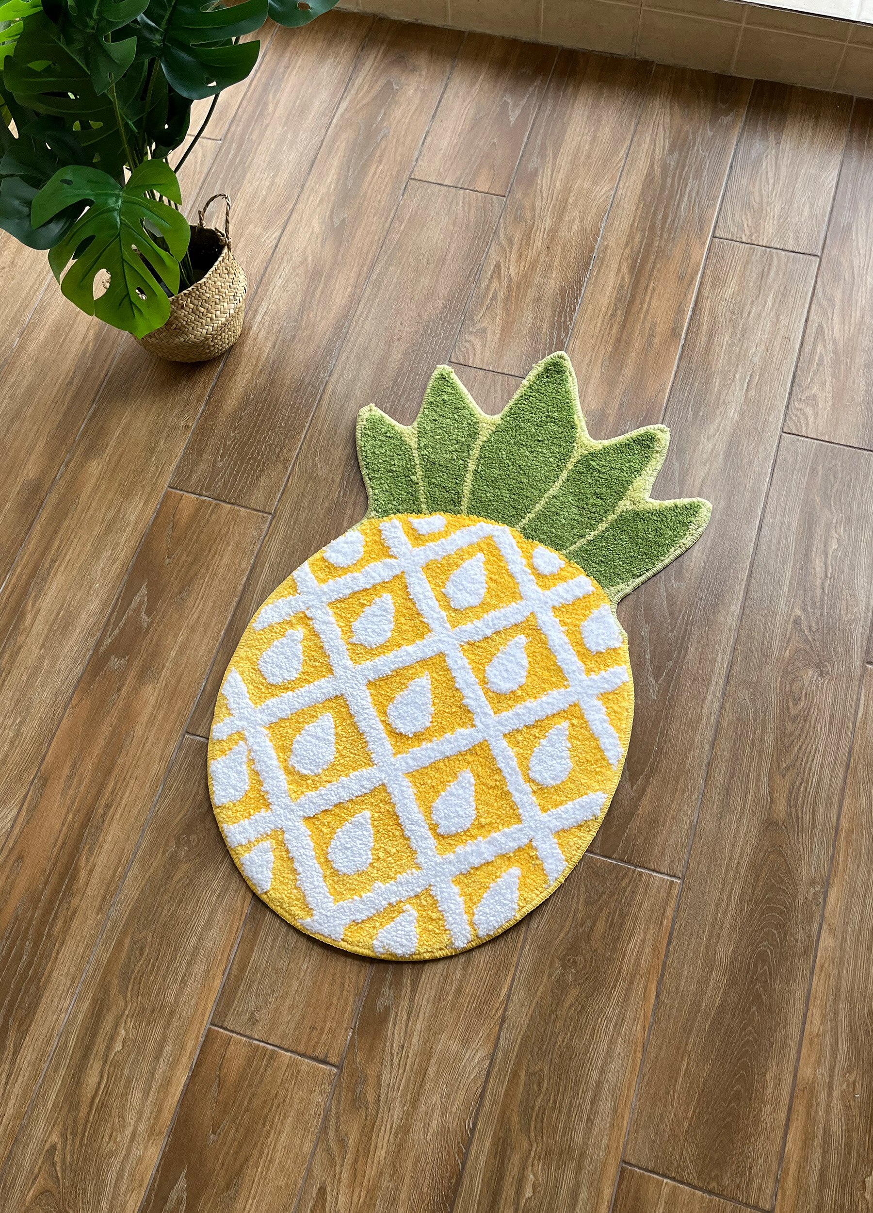 Pineapple Handmade Tufted Rug Non-Slip Fruit Shape Tufting Indoor Mat Washable Welcome Door Carpet Area Rug Decor Living Room