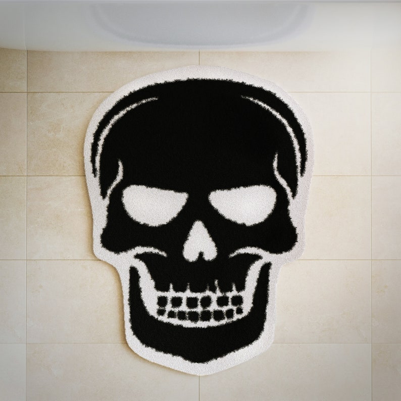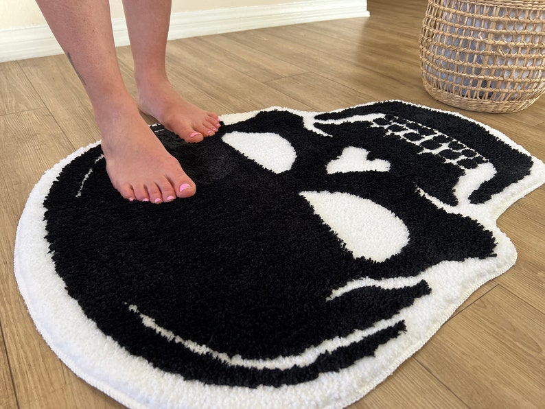 Skull Bath Mat Tufted Rug Gothic Home Decor Halloween Bathroom Mats Black Goth Bedroom Kitchen Room Witchy Spooky Gift
