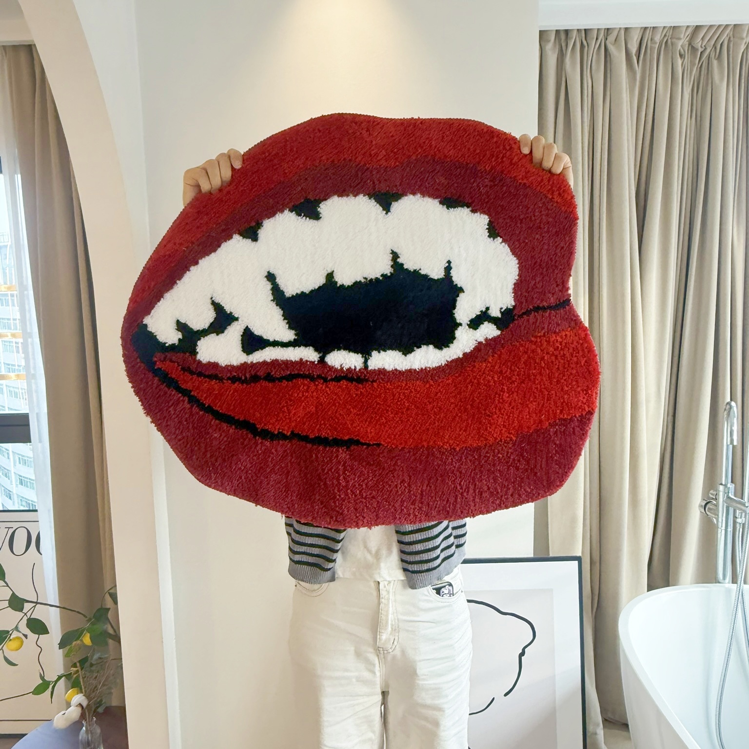 Vibrant Bitten Lips Tufted Rug, Retro Pop Art Style Soft Plush Mat, Non-Slip Trendy Decor for Dorm, Vanity Area & Fashionable Living Spaces